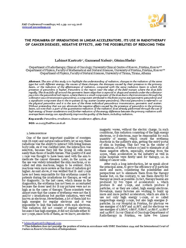 1Department of Radiotherapy, Clinical of Oncology, University Clinical Centre of Kosovo, Pristina, Kosovo**