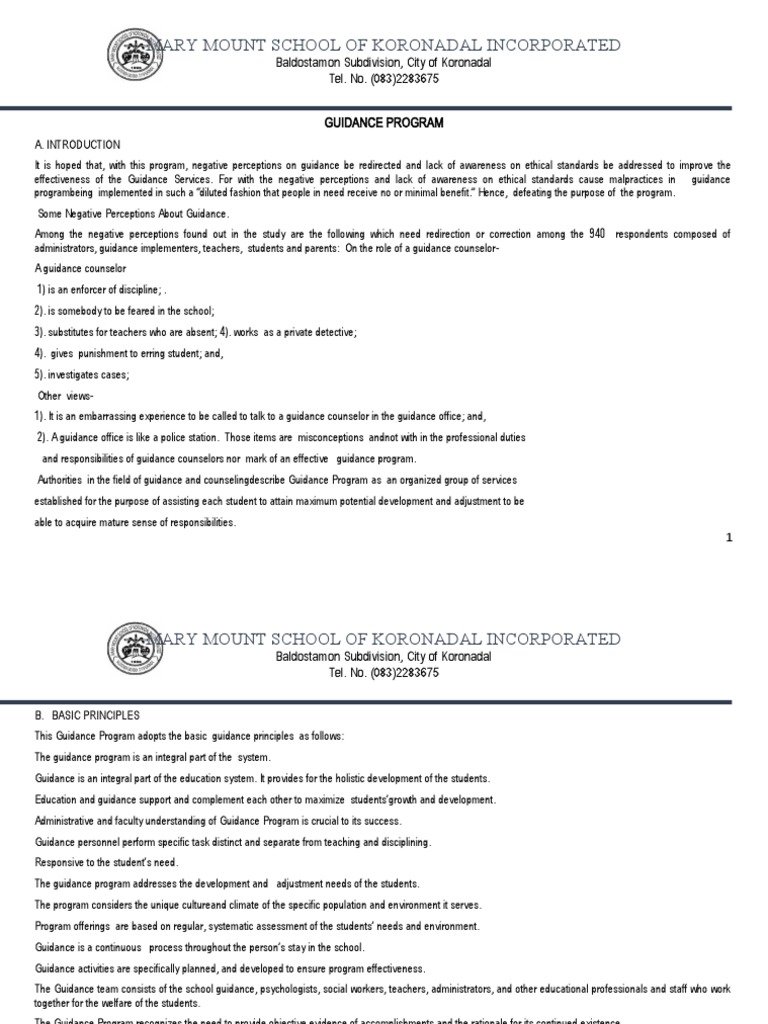 It is hoped that, with this program, negative perceptions on guidance be redirected and lack of awareness on ethical standards be addressed to improve the
