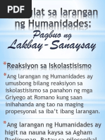 Ang larangan ng Humanidades ay umusbong bilang reaksiyon sa Ang Humanidades ay nagbibigay ng kasnayan sa masining na