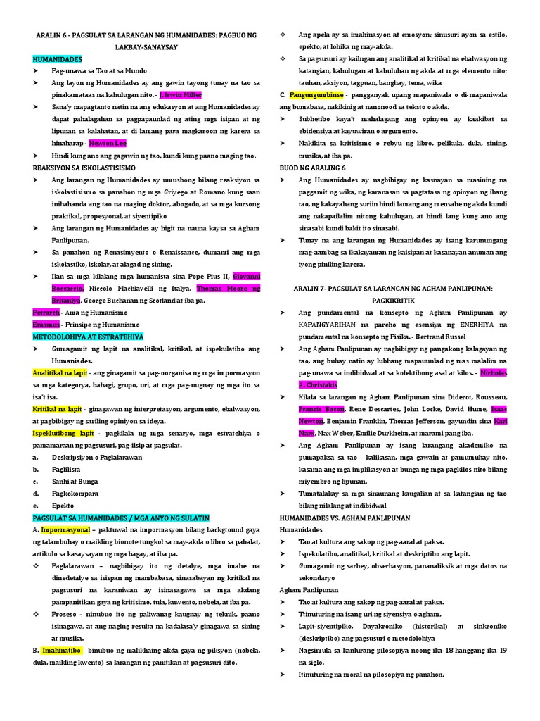 PAGSULAT SA HUMANIDADES / MGA ANYO NG SULATIN HUMANIDADES VS. AGHAM PANLIPUNAN
