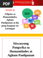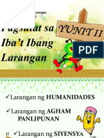 pampanitikan gaya ng kritisimo, tula, kuwento, nobela, at iba pa. Tao at kultura ang sakop ng pag-aaral at paksa.