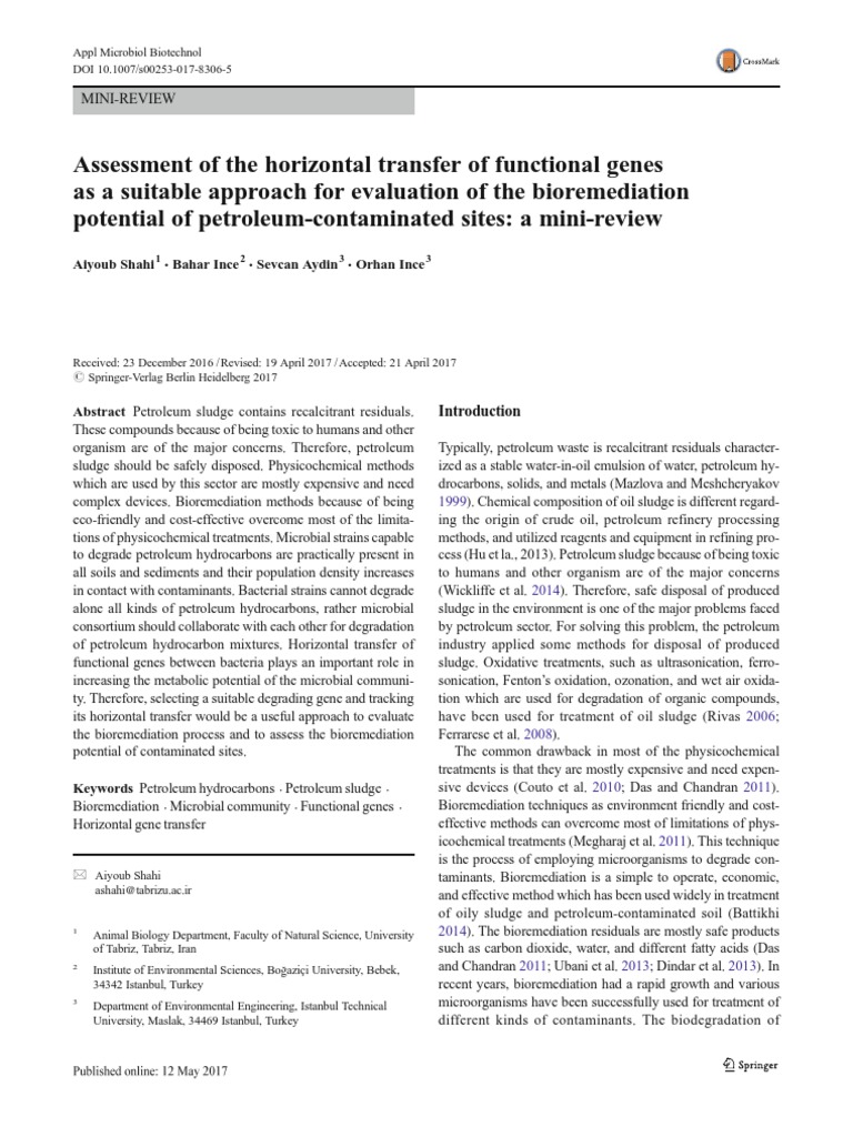 (Fathepure 2014). Its rates depend on the types of petroleum (HGT) can be used for assessment of the bioremediation po-