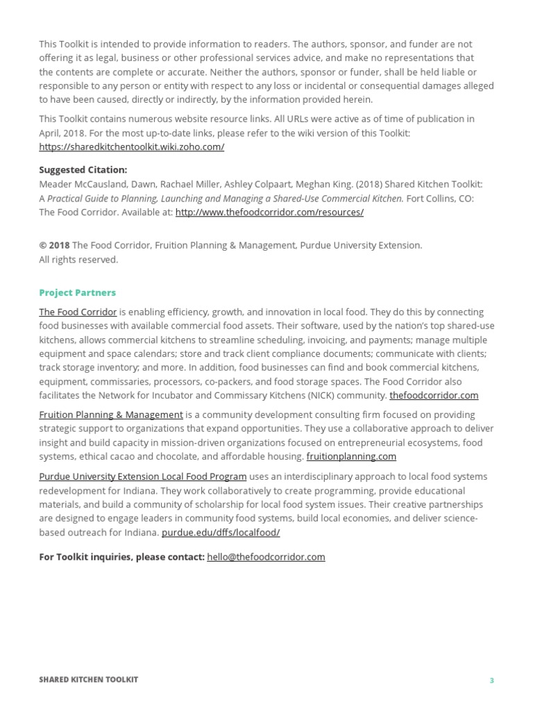 A Practical Guide to Planning, Launching and Managing a Shared-Use Commercial Kitchen. Fort Collins, CO: