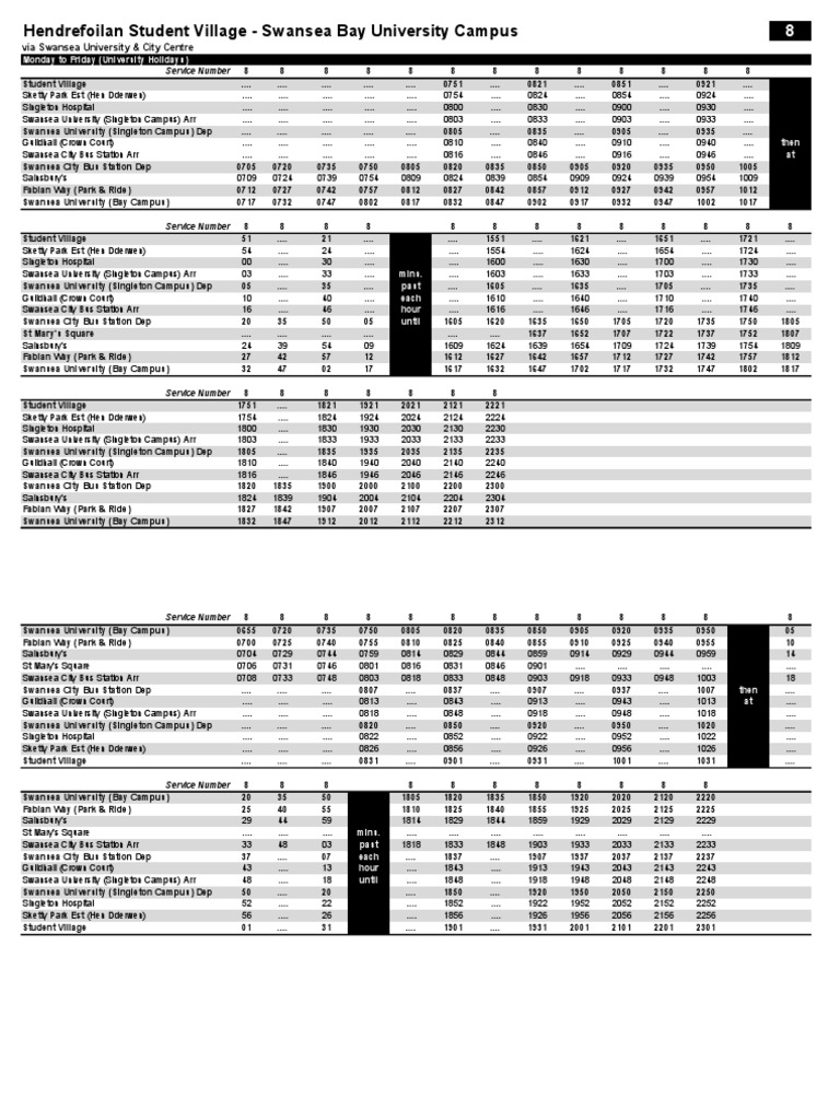 Swansea University (Singleton Campus) Dep .... .... .... .... .... .... .... 0835 .... .... .... 0935 ....