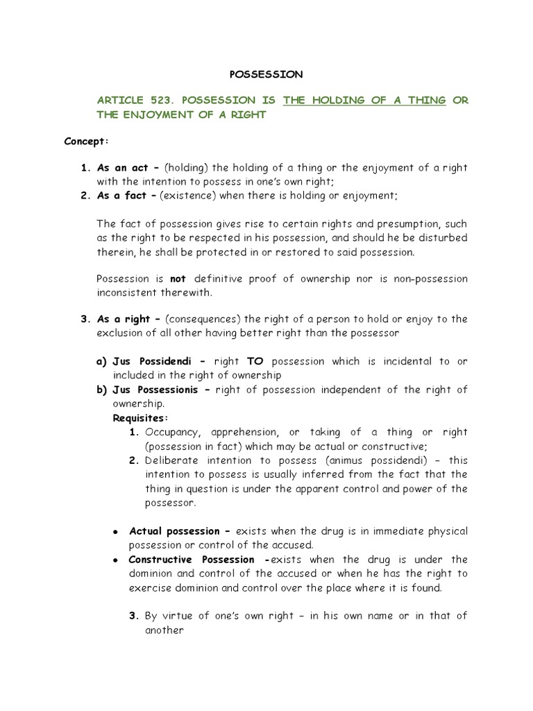 ARTICLE 523. POSSESSION IS THE HOLDING OF A THING OR