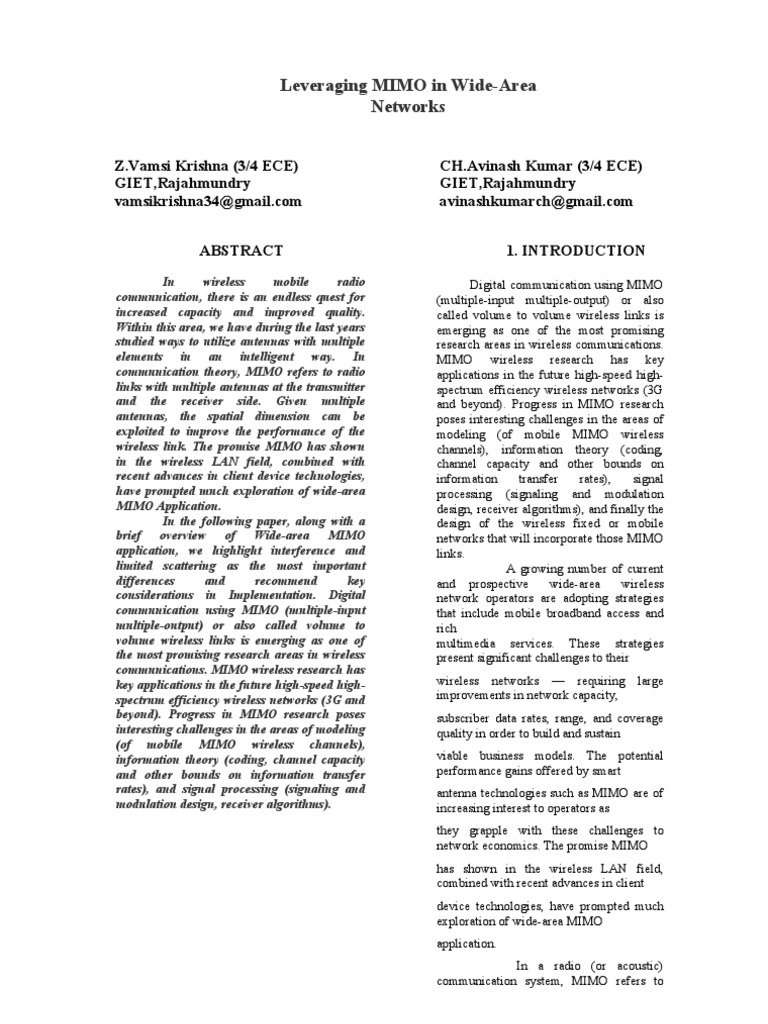device. The result is a selforganizing Leveraging MIMO in Wide-Area Networks