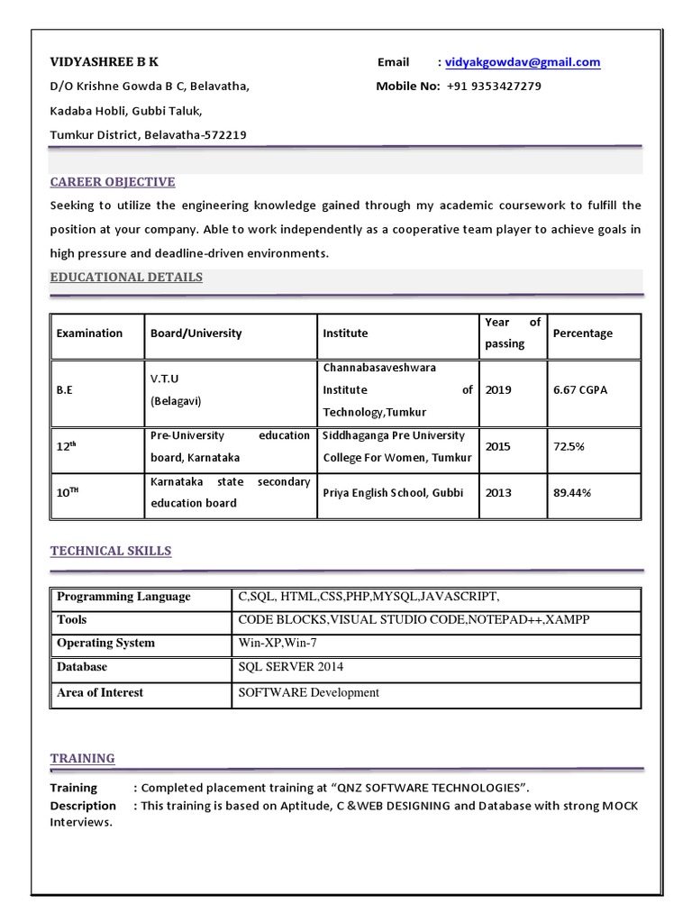 VIDYASHREE B K Email : vidyakgowdav@gmail.