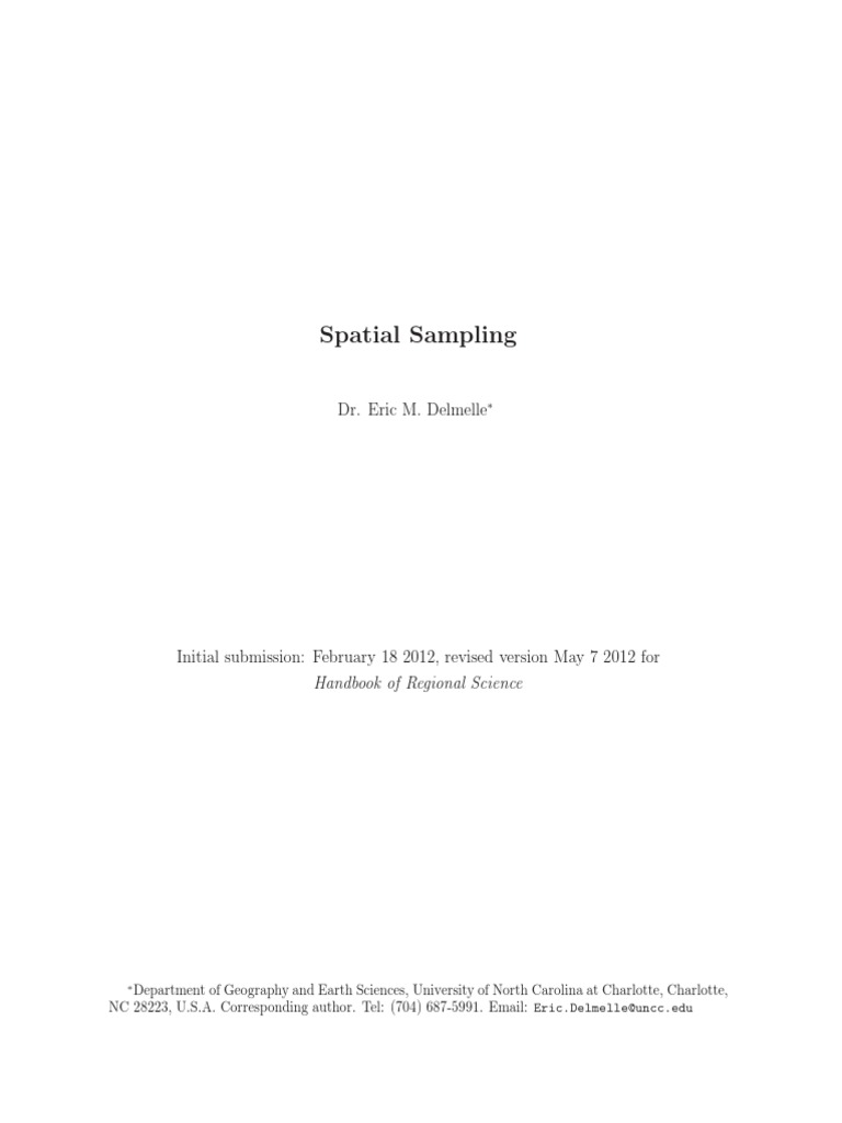 Delmelle, E. (2009). Spatial Sampling. In: Rogerson, P. and S. Fotheringham (eds). The SAGE