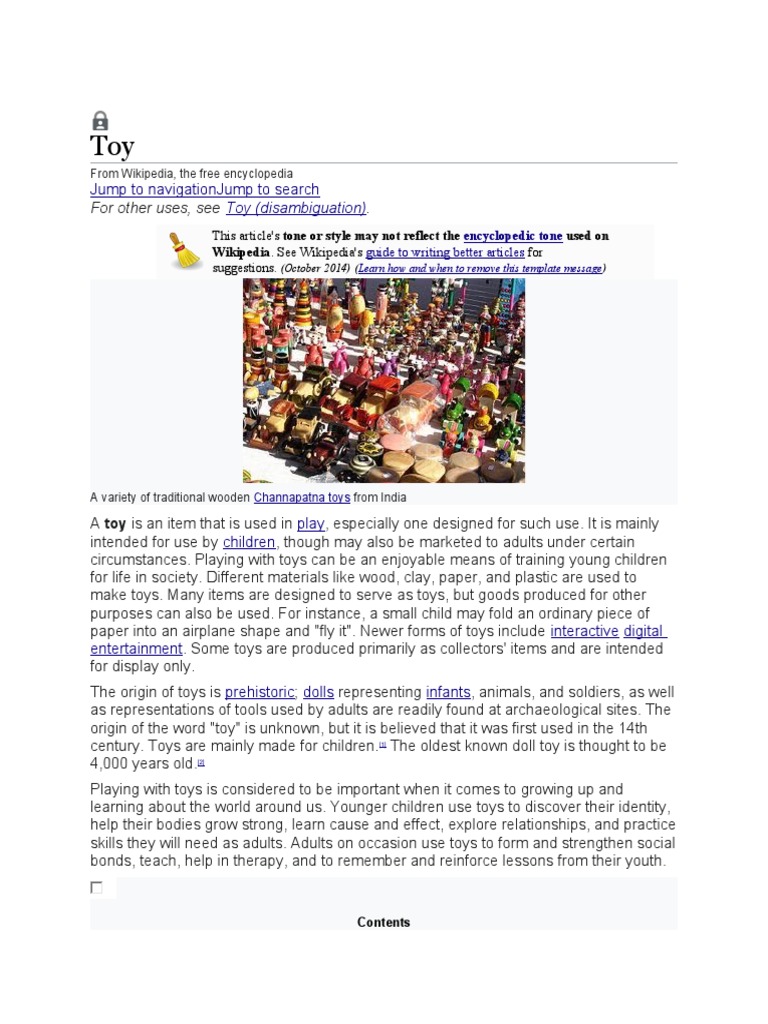 century. Toys are mainly made for children. [1] The oldest known doll toy is thought to be