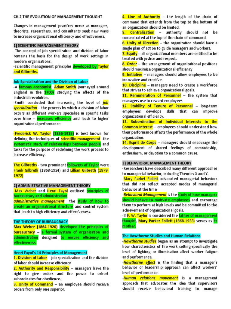 CH.2 THE EVOLUTION OF MANAGEMENT THOUGHT 4.