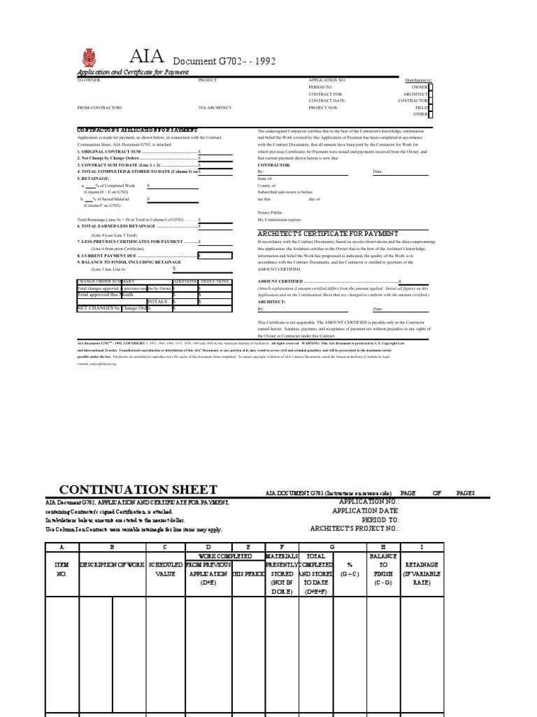 AIA Document G702 - 1992 TM