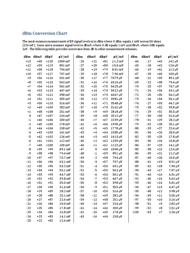dBm Conversion Chart