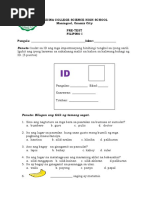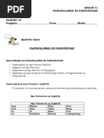Pangalan: _________________________________ Petsa: ________________________ Iskor: _______