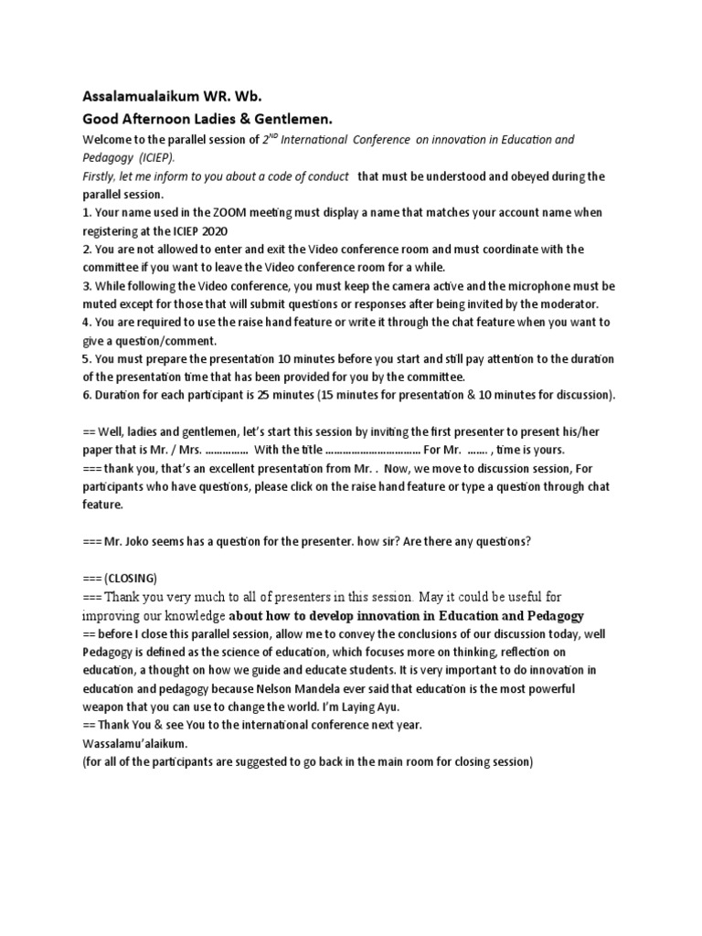 Welcome to the parallel session of 2ND International Conference on innovation in Education and