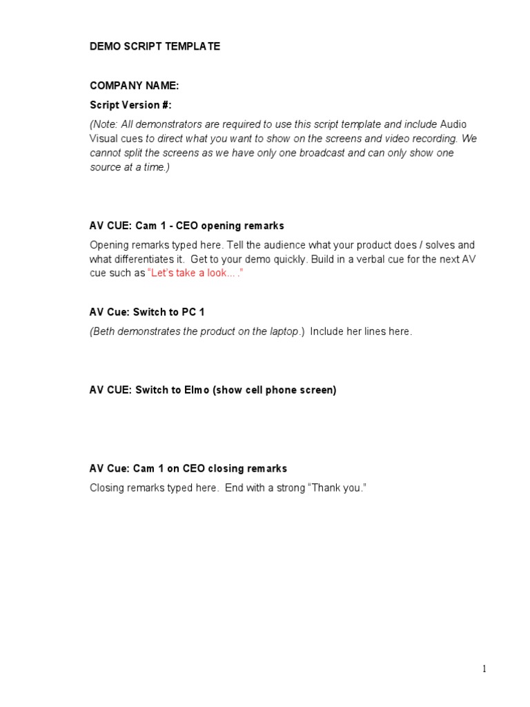 what differentiates it. Get to your demo quickly. Build in a verbal cue for the next AV