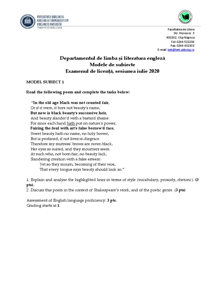 2. Discuss this poem in the context of Shakespeare’s work, and of the poetic genre. (3 pts)