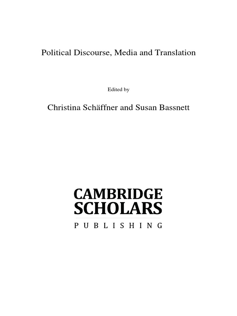 Copyright © 2010 by Christina Schäffner and Susan Bassnett and contributors