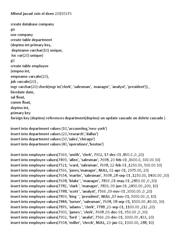 foreign key (deptno) references department(deptno) on update cascade on delete cascade )