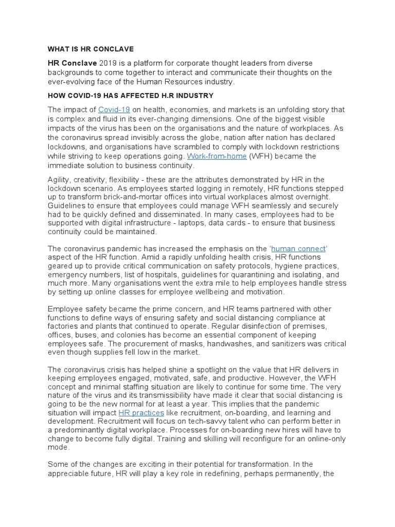 HOW COVID-19 HAS AFFECTED H.R INDUSTRY