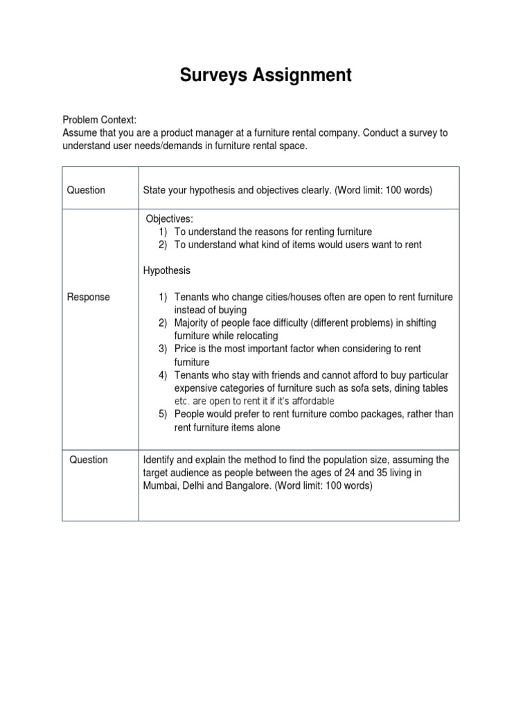 Assume that you are a product manager at a furniture rental company. Conduct a survey to