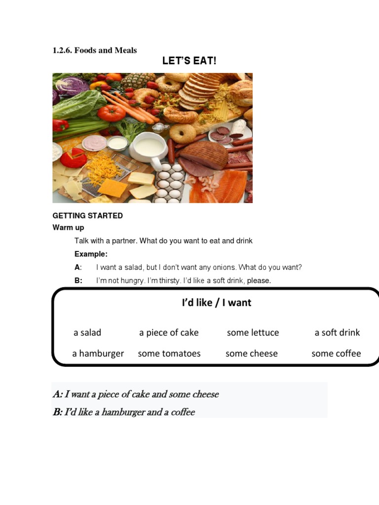 Talk with a partner. What do you want to eat and drink