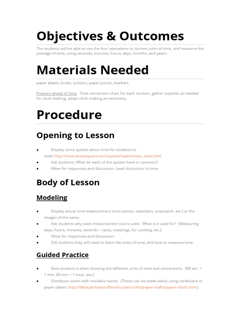 Prepare ahead of time: Time conversion chart for each student, gather supplies as needed