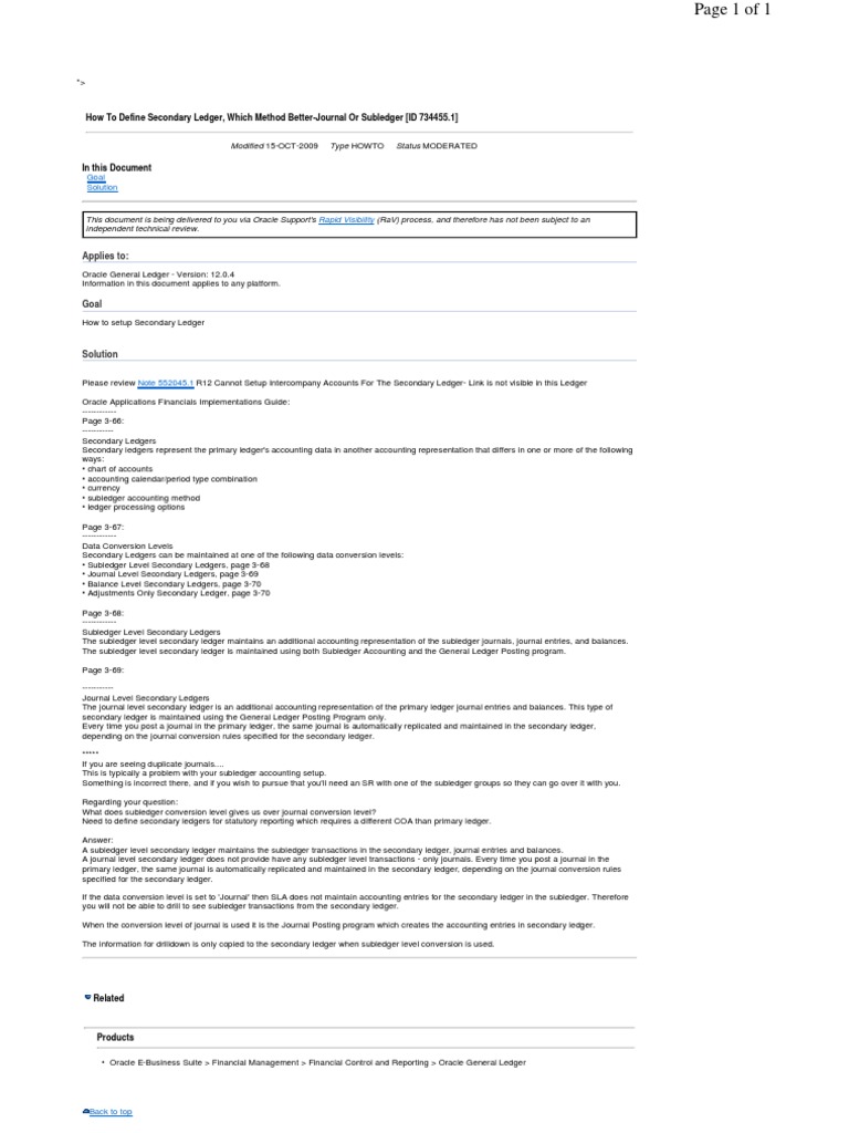 How To Define Secondary Ledger, Which Method Better-Journal Or Subledger [ID 734455.1]