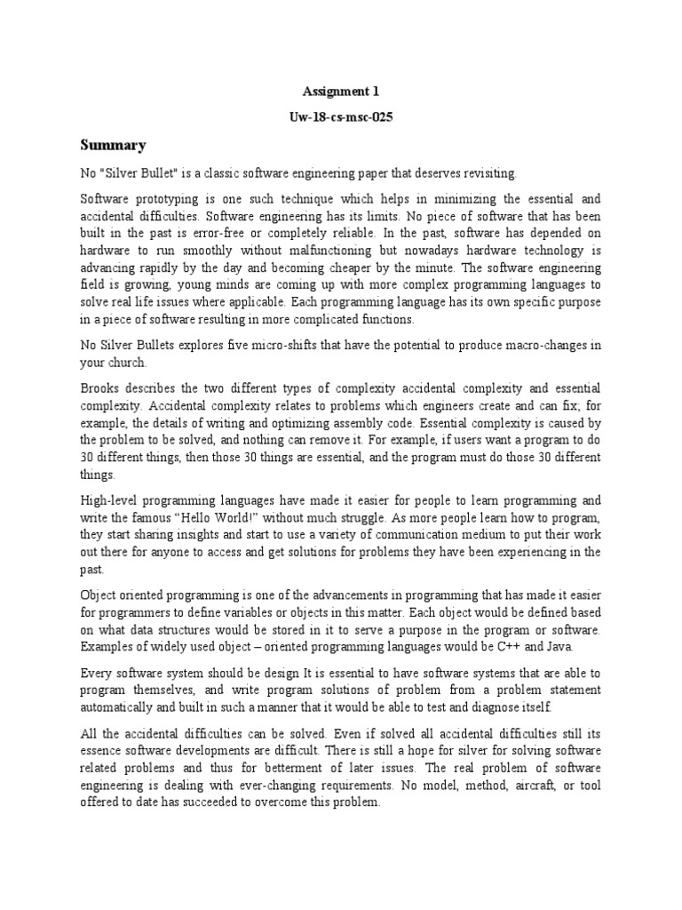 accidental difficulties. Software engineering has its limits. No piece of software that has been
