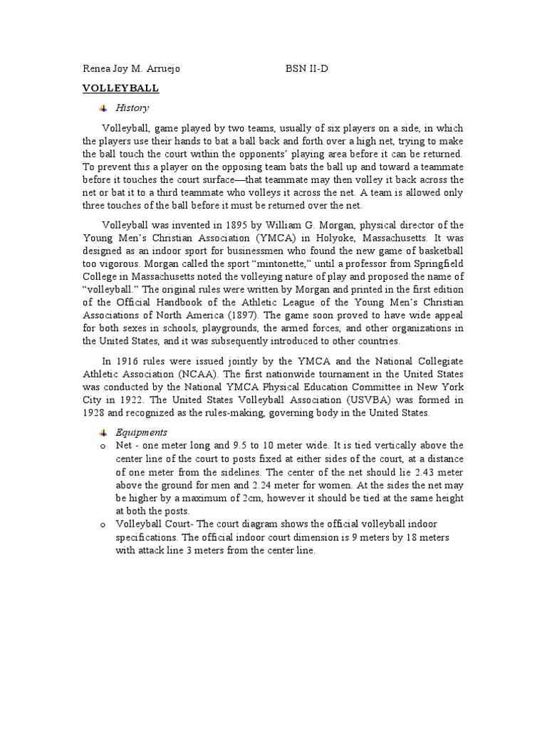 “volleyball.” The original rules were written by Morgan and printed in the first edition