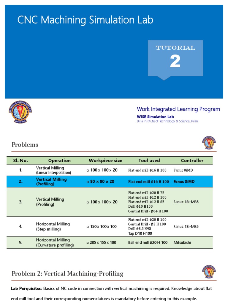 Lab Perquisites: Basics of NC code in connection with vertical machining is required. Knowledge about flat
