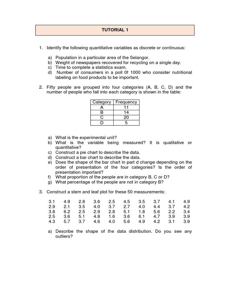 1. Identify the following quantitative variables as discrete or continuous: