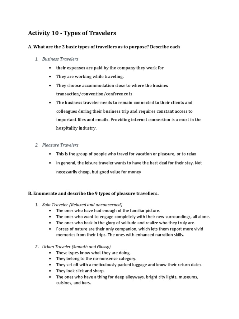 Activity 10 - Types of Travelers