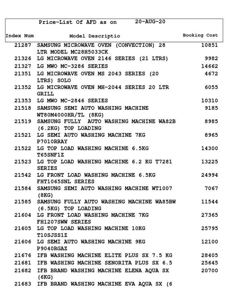 Price-List Of AFD as on 20-AUG-20