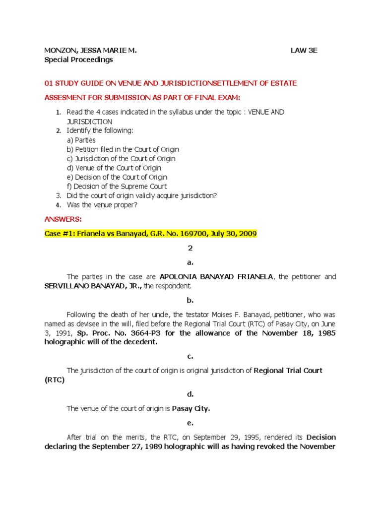 01 STUDY GUIDE ON VENUE AND JURISDICTIONSETTLEMENT OF ESTATE