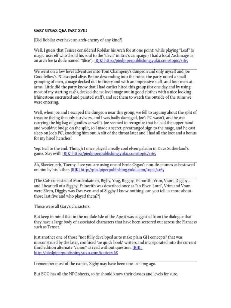 GARY GYGAX Q&A PART XVIII