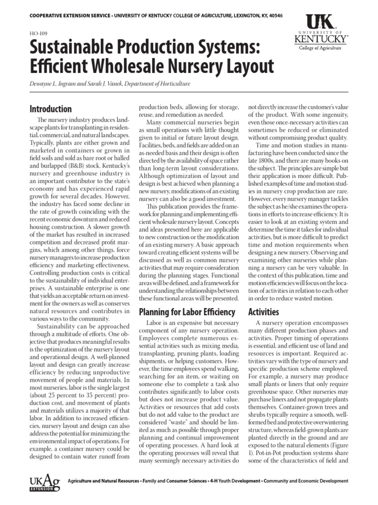 Sustainable Production Systems: Efficient Wholesale Nursery Layout
