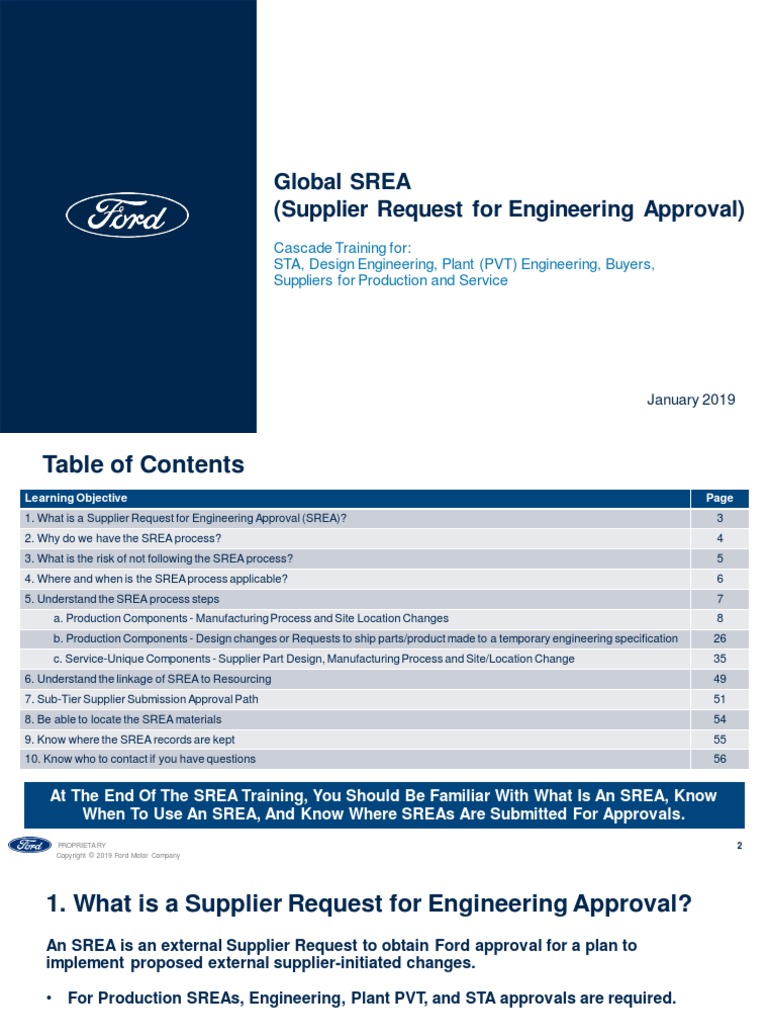 • The SREA is the communication tool used by Ford Motor Company to meet the