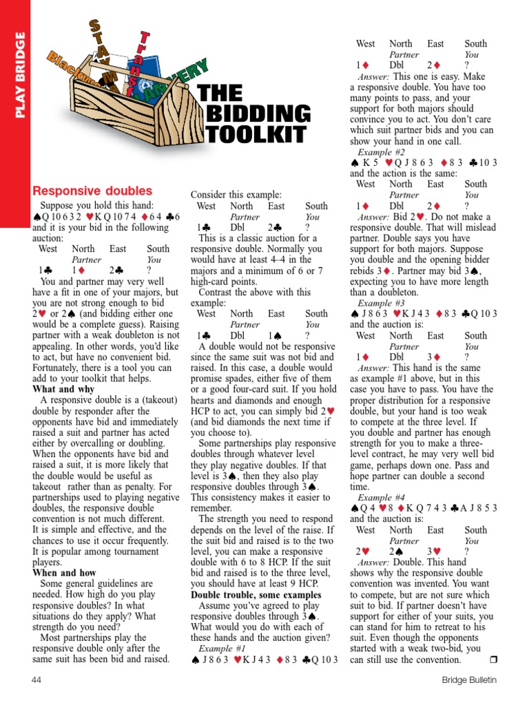 situations do they apply? What responsive doubles through 3. support for either of your suits, you
