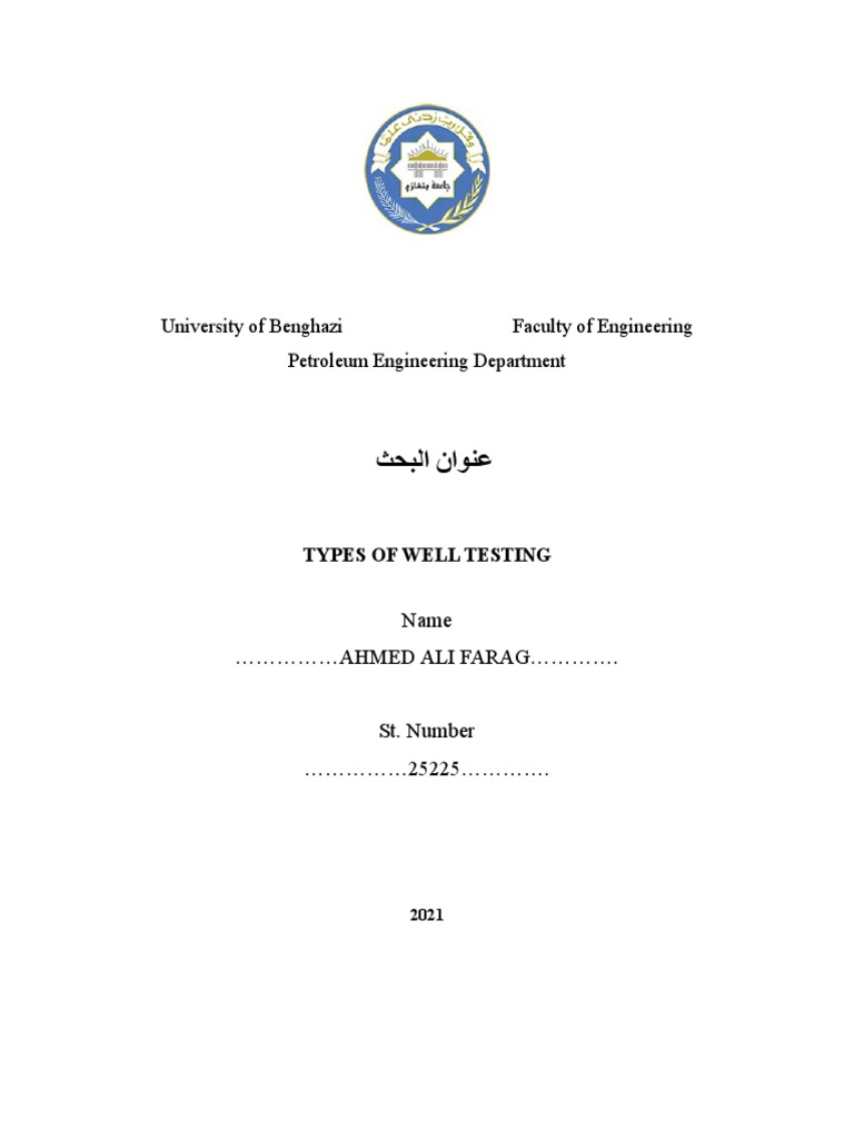 TYPES OF WELL TESTING