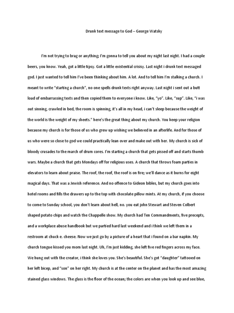 Drunk text message to God – George Watsky