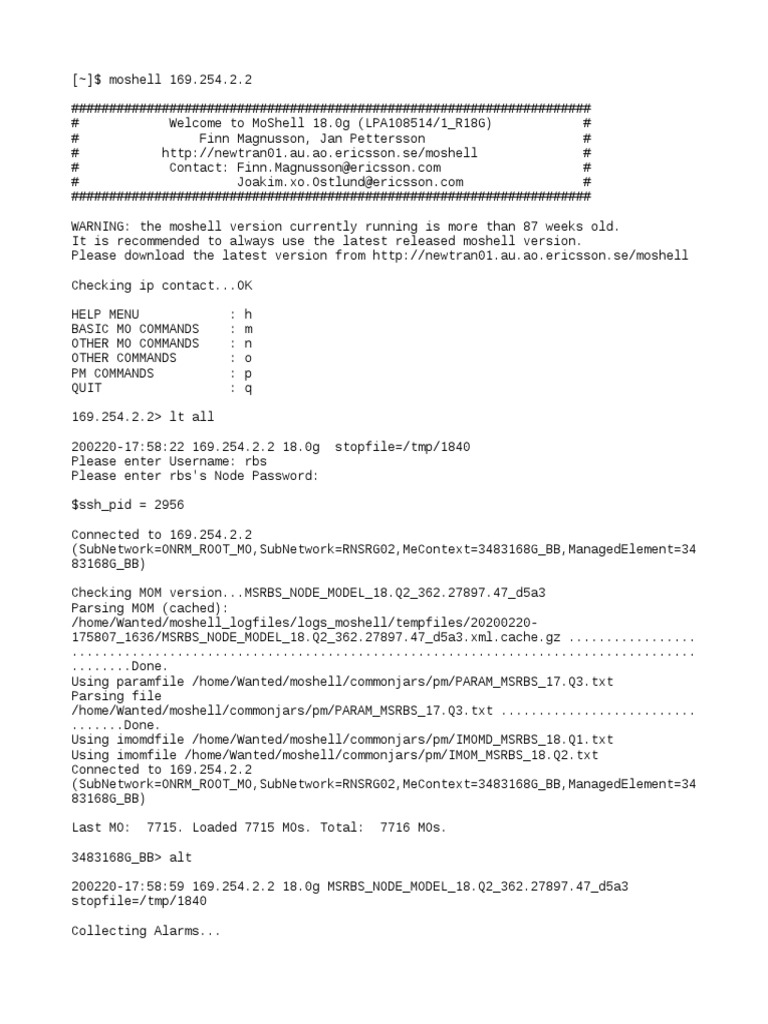 WARNING: the moshell version currently running is more than 87 weeks old.