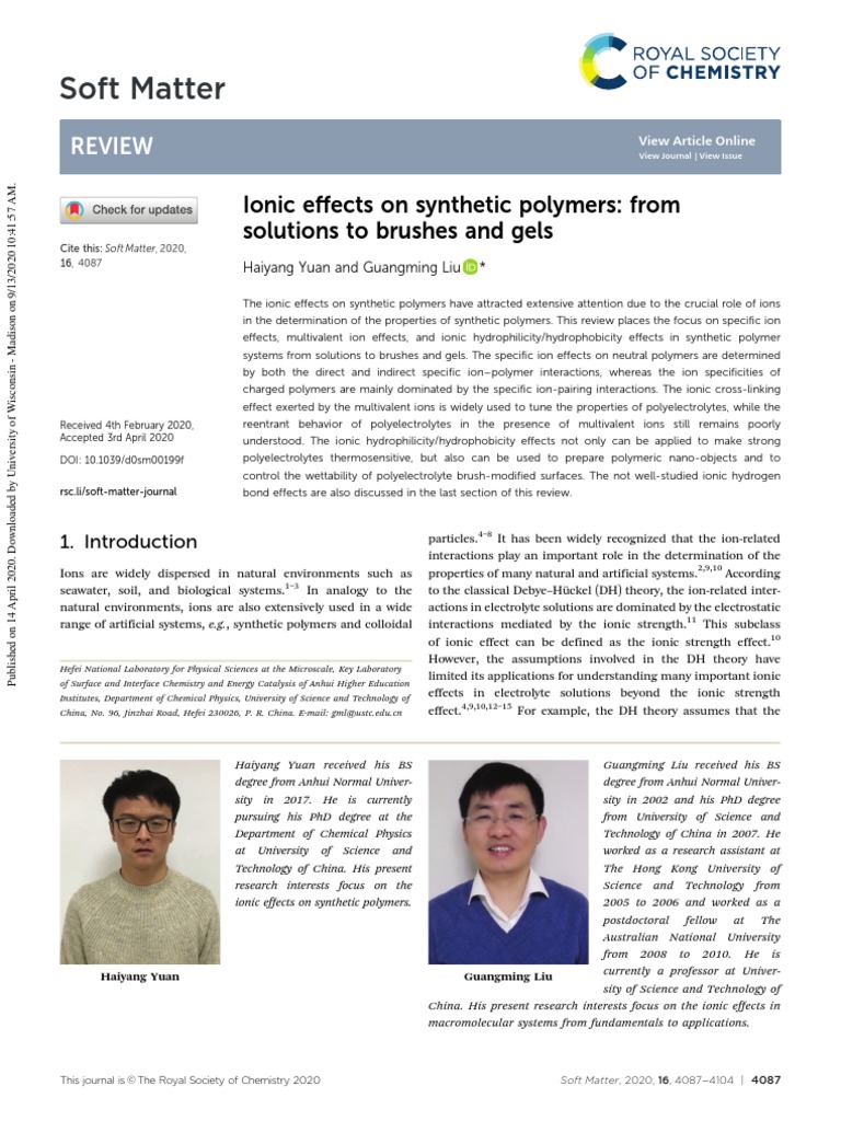 4104 | Soft Matter, 2020, 16, 4087--4104 This journal is © The Royal Society of Chemistry 2020