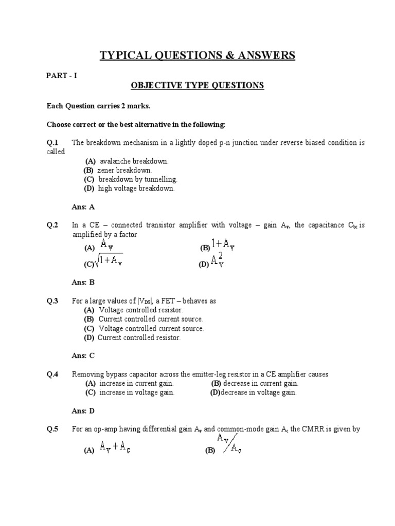 Q.2 In a CE – connected transistor amplifier with voltage – gain A v, the capacitance Cbc is