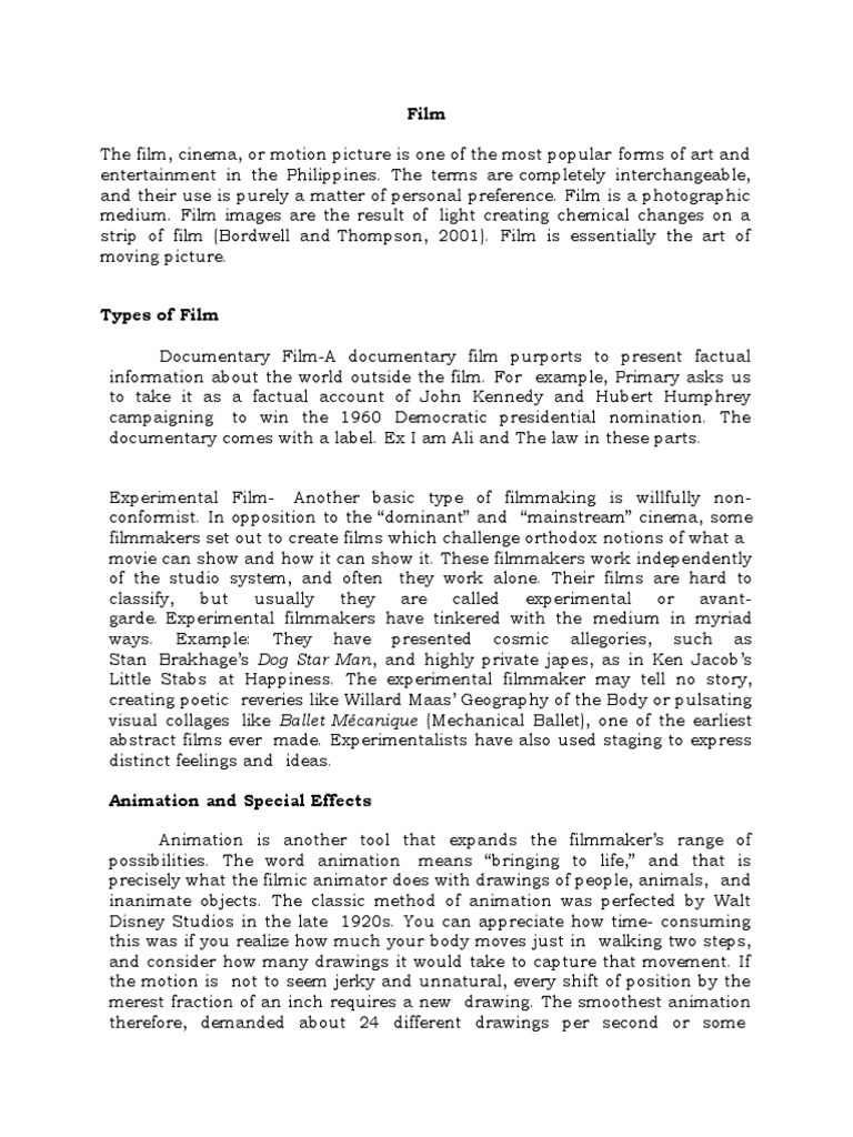 strip of film (Bordwell and Thompson, 2001). Film is essentially the art of