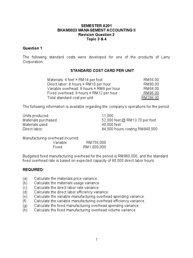 BKAM3023 MANAGEMENT ACCOUNTING II