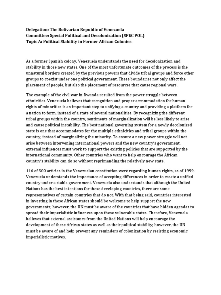 As a former Spanish colony, Venezuela understands the need for decolonization and