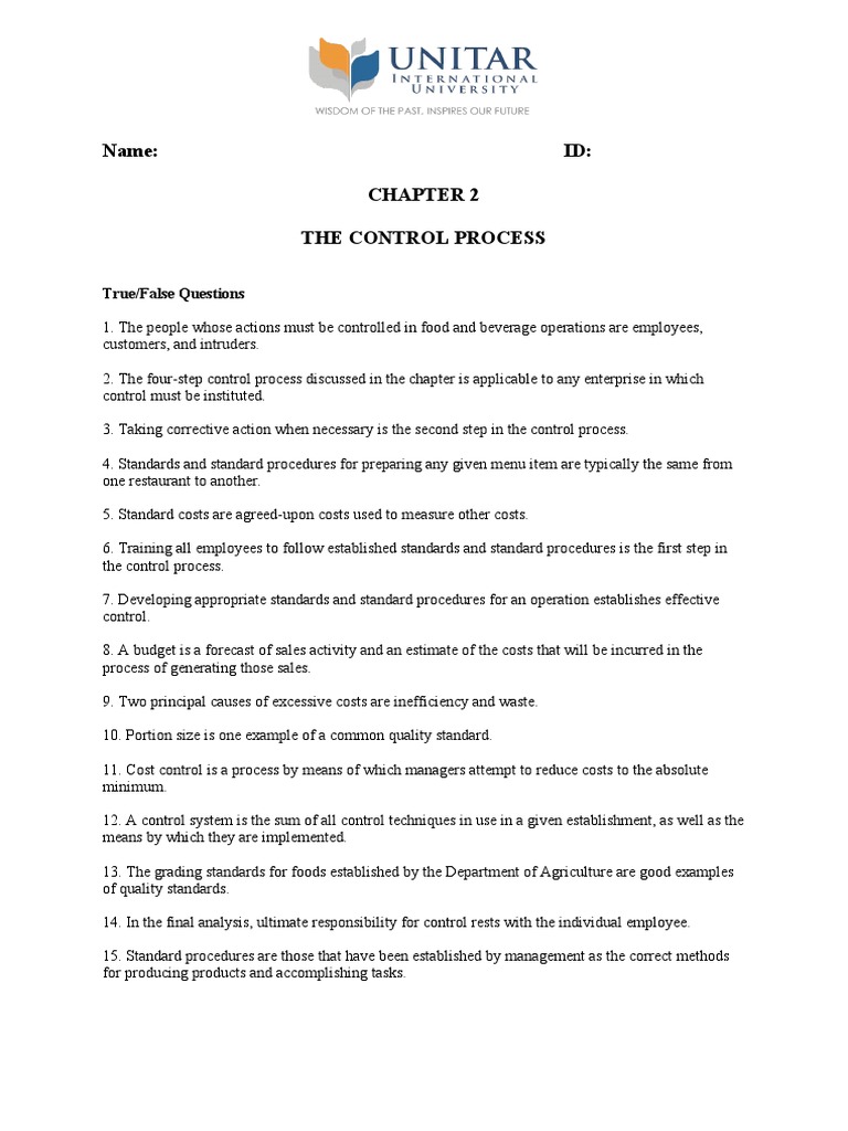 2. The four-step control process discussed in the chapter is applicable to any enterprise in which