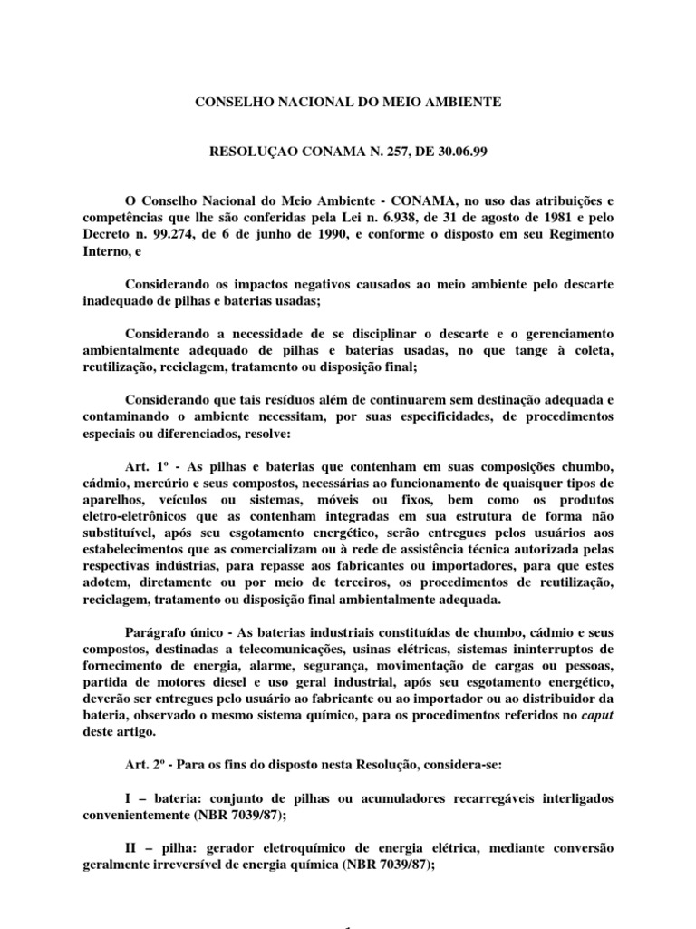 RESOLUÇAO CONAMA N. 257, DE 30.06.99