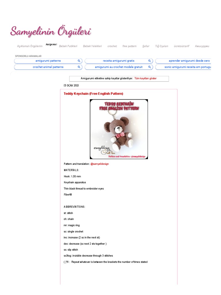 Teddy Keychain (Free English Pattern)