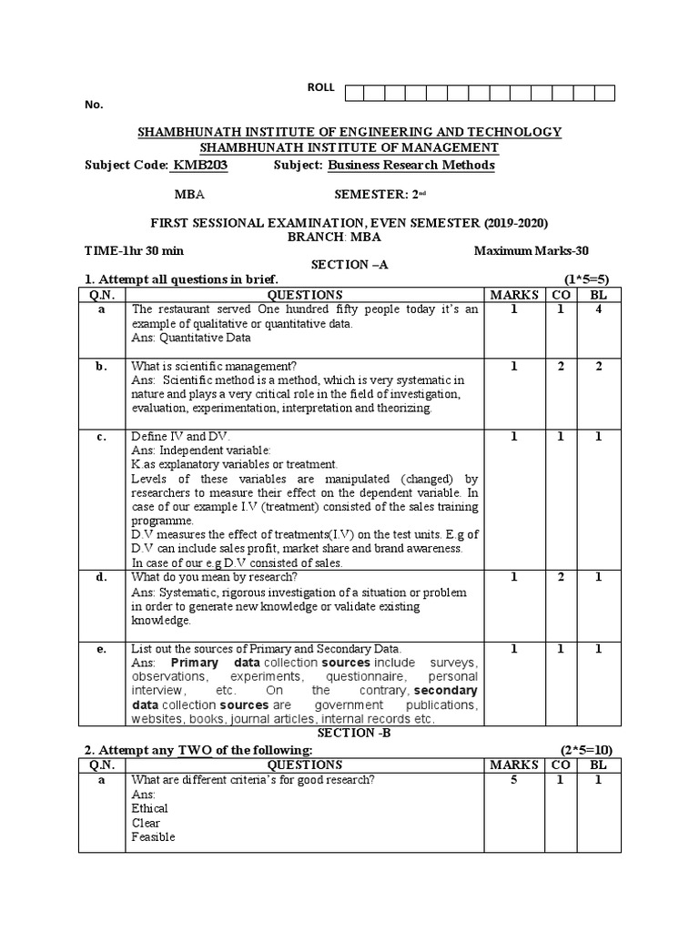 Subject Code: KMB203 Subject: Business Research Methods